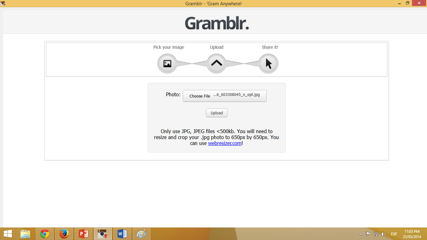 ¿Qué faltaría? Pues compartir el trabajo realizado. Gramblr nos abre la pantalla con diferentes enlaces para compartir, visualizar nuestra fotografía e incluso insertar en sitios web como foros.