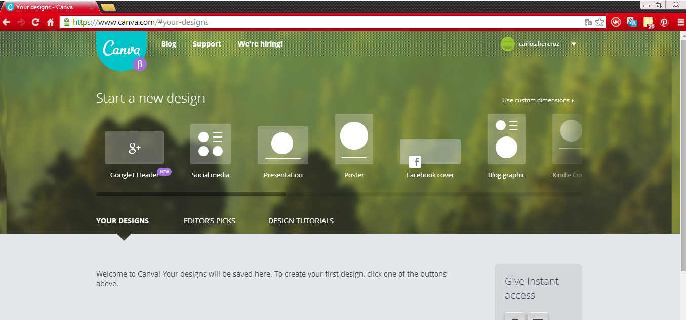 www.canva.com es un sitio que nos permite diseñar de forma sencilla y con vista profesional. Solo se debe abrir una cuenta usando nuestro correo electrónico o conectando nuestra cuenta de Facebook.