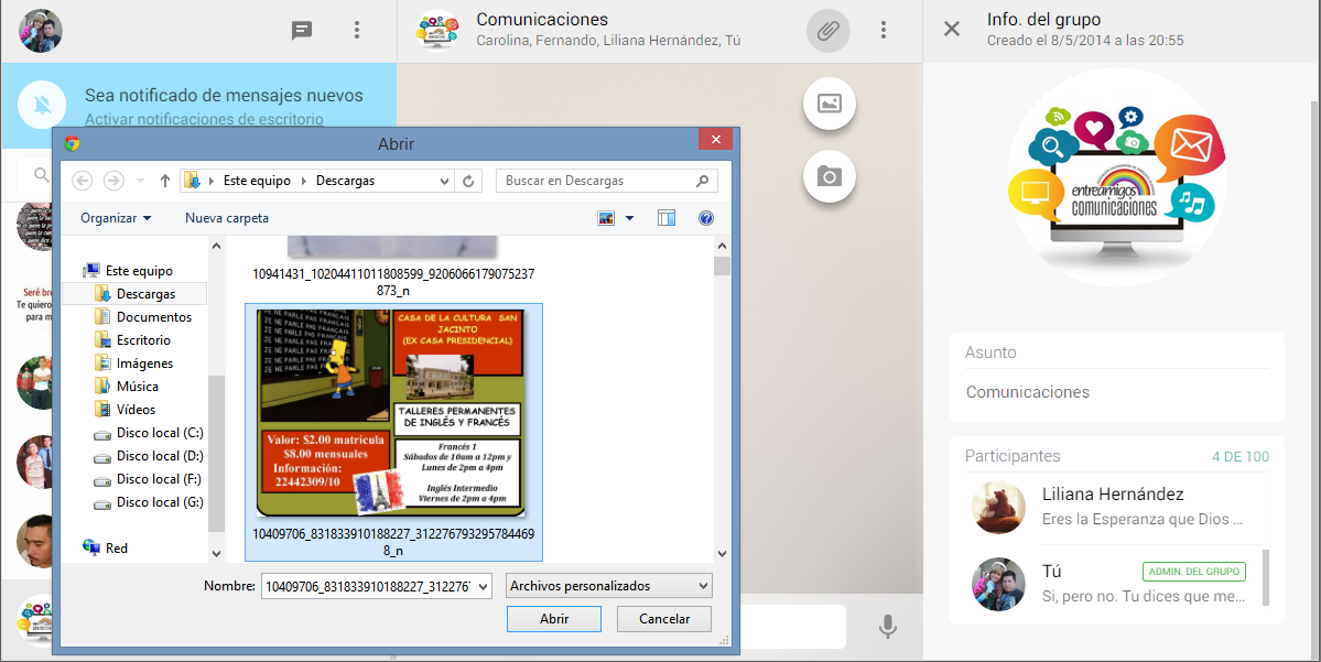Paso 5: Podemos enviar imágenes y ver la información del contacto o grupo similar a la aplicación móvil.