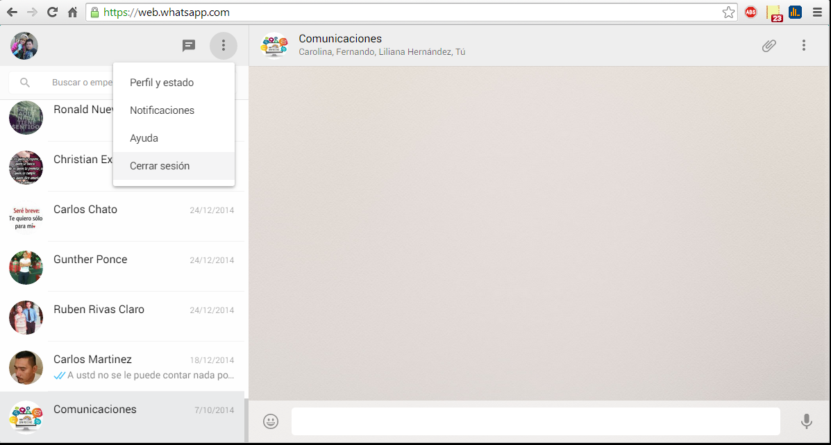 Paso 6: Para salir de WhatsApp Web damos en Cerrar sesión